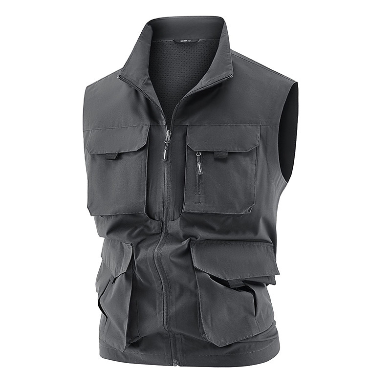 Men's Fishing Vest Sleeveless Vest Outdoor Casual Spring Fall Pocket Polyester Quick Dry Plain Zipper Stand Collar Black Army Green Blue Khaki Vest