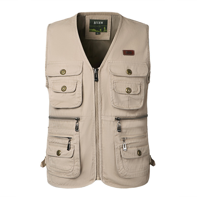 Men's Fishing Vest Hiking Vest / Gilet Sleeveless Outerwear Jacket Travel Cargo Safari Vest Top Outdoor Windproof Multi-Pockets Quick Dry Lightweight Fall Spring Cotton Army Green Khaki Hunting