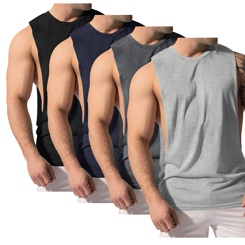 4 Pieces Men's Tank Top Vest Undershirt Sleeveless Shirt Sleeveless U Neck Scoop Neck Summer Solid Color Color Block Plain Fashion Sporty Classic Color Block Street Casual Sports Royal Blue Top