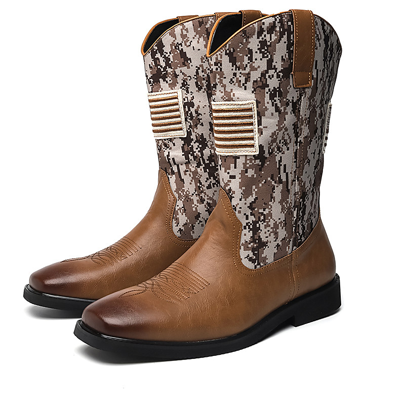 Men's Western Cowboy Boots with American Flag Embroidery, Square Toe Design, Durable Outsole, Patriotic Rodeo Style Footwear for Ranch, Country Music Festivals, Horse Riding and Outdoor Wear