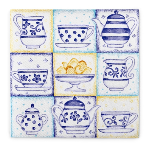 Sovie HOME Serviette Cookie in Blau aus Linclass® Airlaid 40 x 40 cm, 12 Stück - Kaffee Cafe Tee Blumen Punkte