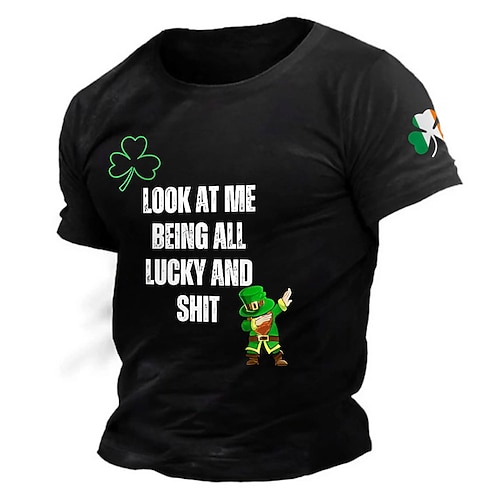 Festa di San Patrizio Per uomo Quadrifoglio Divertente Stampa lettera Maglietta 100% Cotone Manica Corta Grafico Camicia Nero Maglietta comoda Vacanza Streetwear Abbigliamento di stilista