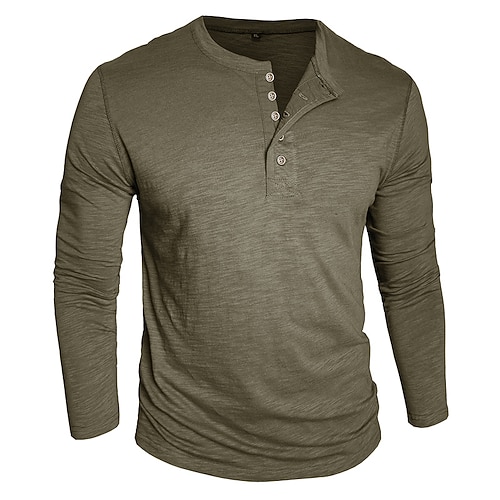 Per uomo Maglia Henley Maglietta Maglietta 100% cotone Manica Lunga Tinta unica Semplice Tinta unita Moda Designer Casual Bottoni Henley Casuale Quotidiano All'aperto Estate Primavera Autunno Nero