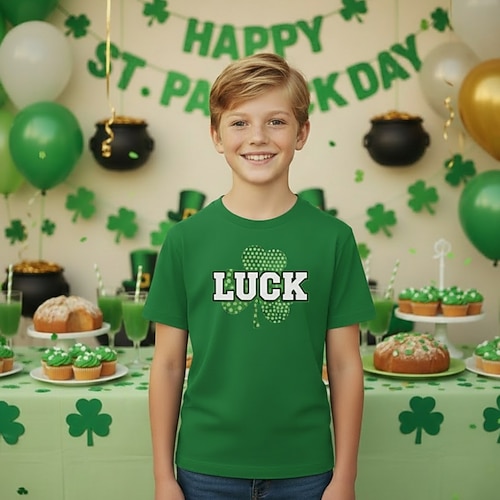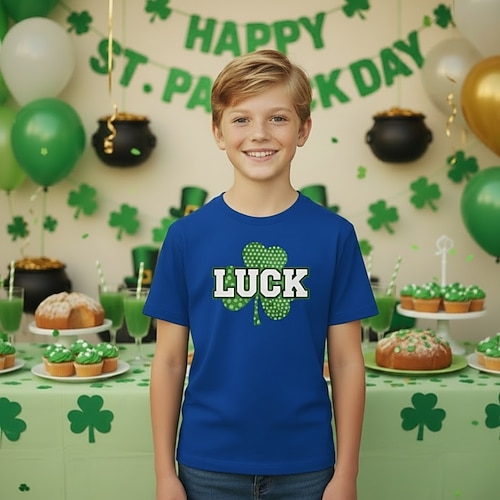 100% Cotone Giorno di San Patrizio Bambini Ragazzi Blu Nero Bianco Grafico Trifoglio Giorno di San Patrizio Maglietta Blusa Girocollo Manica Corta All'aperto Abbigliamento Quotidiano Moda Streetwear