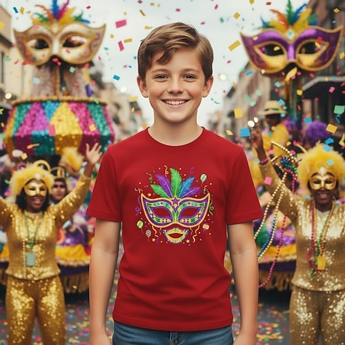 Cotone 100% Cotone Carnevale Bambini Ragazzi Blu Nero Bianco Grafico Maschera Martedì grasso Maglietta Blusa Girocollo Manica Corta All'aperto Abbigliamento Quotidiano Moda Streetwear Designer Stampa