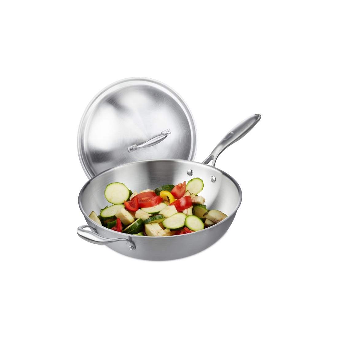 Wok i rustfrit stål med låg