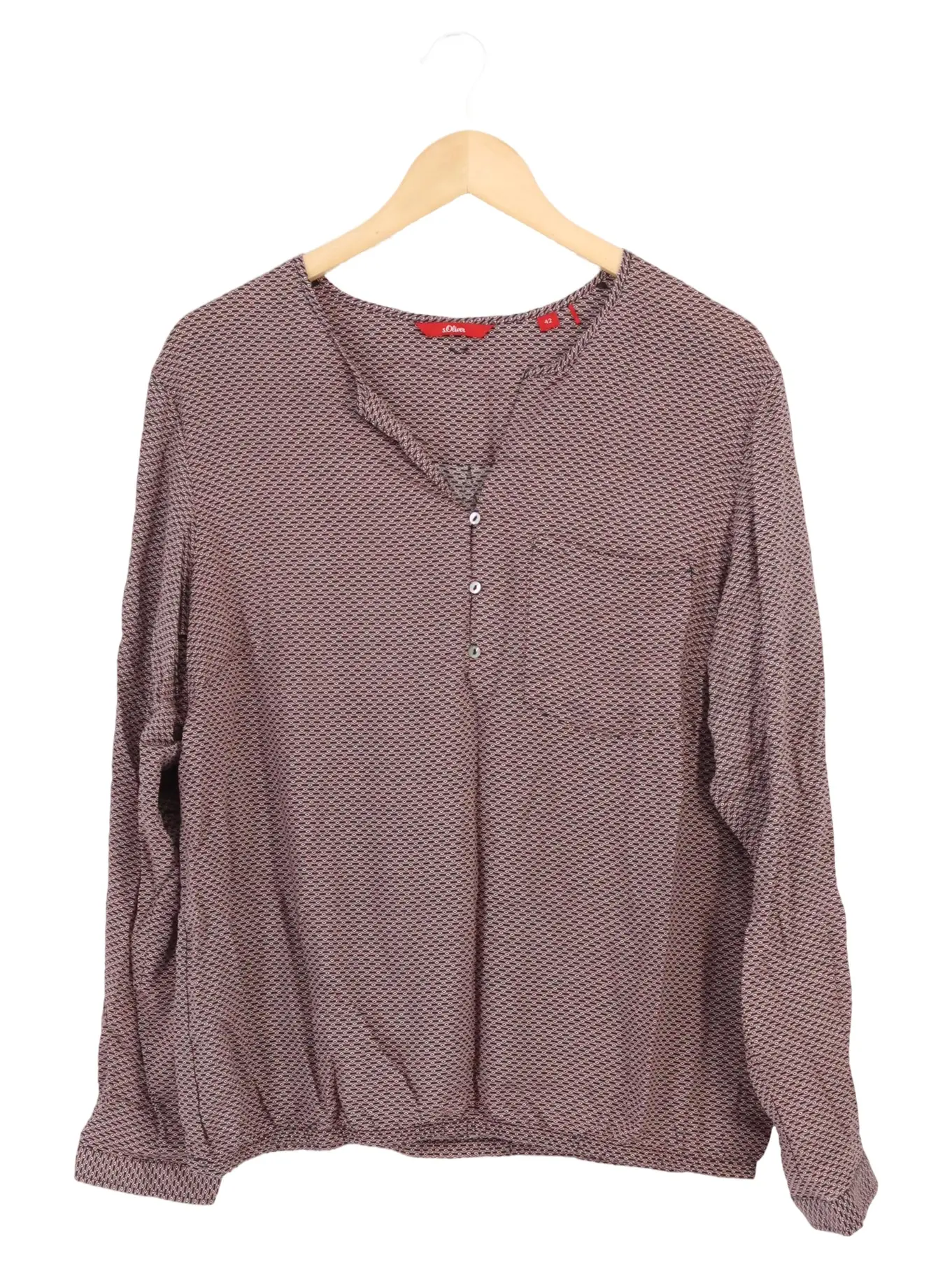 S.OLIVER Damen Langarm Bluse Braun Muster Gr. 42 Top Zustand