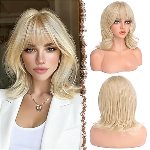 Kurze, gewellte Perücke mit Pony für Frauen, schulterlanger, lockiger Bob, bezaubernde Kunsthaarperücken für Damen mit natürlich gewelltem, hitzebeständigem Haar für den täglichen Gebrauch auf Partys