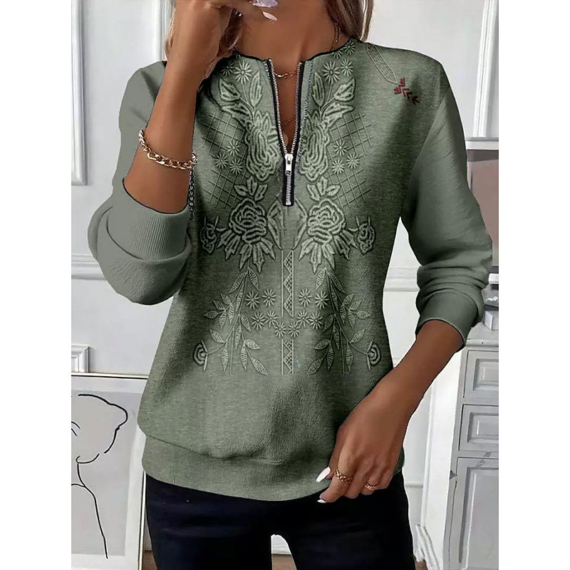 Women's Pullover Sweatshirt Zip Up Sweatshirts Floral Graphic Tribal Fashion Casual Long Sleeve Crew Neck Regular Tops Street Dailywear Zipper Print Black Purple Green Spring Fall Winter