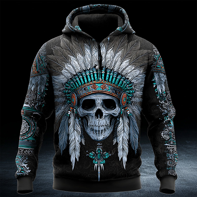 Men's Tribal Pullover Hoodie Sweatshirt Fashion Ethnic Vintage Retro Crew Neck Outdoor Party Gift Travel Blue Brown Drawstring Fall Winter Designer S M L XL XXL XXXL