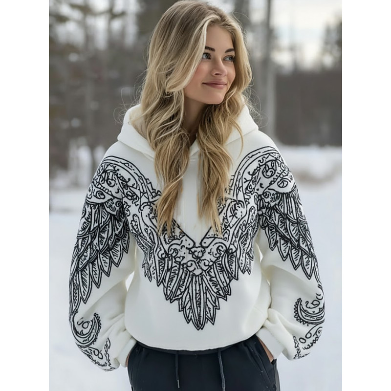Women's Pullover Hoodie Sweatshirt Graphic Geometric Tribal Vintage Casual Boho Long Sleeve Hooded Regular Tops Casual Street Dailywear Patchwork Print Front Pocket Black Spring Fall Winter