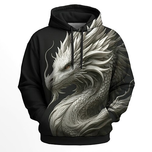 Per uomo Drago 3D Felpe con cappuccio Felpa Cool Festa Casual Manica Lunga Girocollo Con Cappuccio Club Abbigliamento casual alla moda Blu Verde Grigio Coulisse Grafico Autunno Inverno progettista S