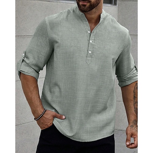 Per uomo Camicia Camicia popover Camicia Estiva Camicia casual Camicia da Spiaggia Nero Bianco Verde chiaro Rosa Azzurro Manica Lunga Semplice Colletto alla coreana Vacanza Camicia hawaiana