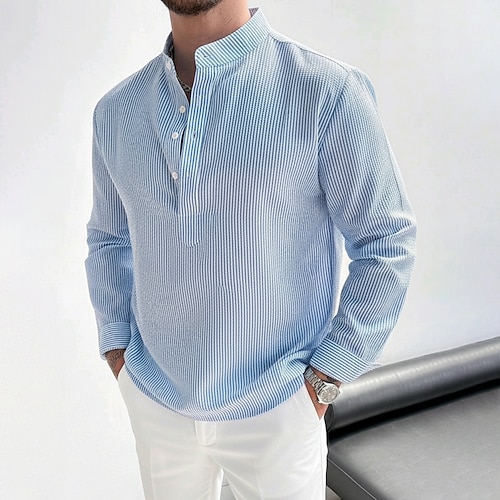 Per uomo Camicia Camicia popover Camicia casual Camicia di Seersucker Rosa Verde Azzurro Manica Lunga A righe Collo alla coreana Colletto Henley Casuale Quotidiano Abbigliamento Elegante Moda Casual