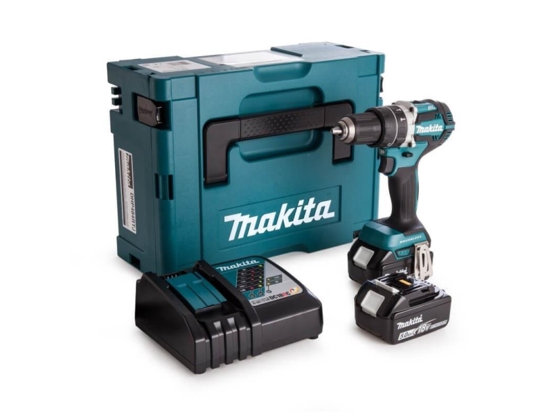 Makita DHP484 - Hammerbor/skruemaskine - ledningfri - 2-hastigheders - nøgleløs borepatron 13 mm - 54 N·m - 2 batterier - 18 V