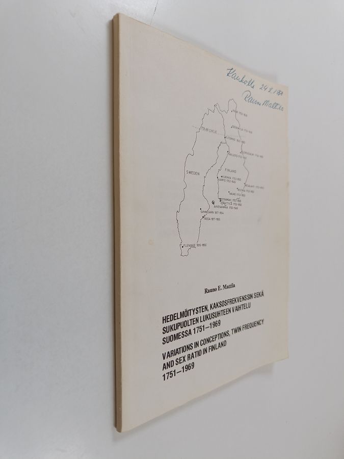 Rauno E. Mattila : Hedelmöitysten, kaksosfrekvenssin sekä sukupuolten lukusuhteen vaihtelu Suomessa 1751-1969 - (Variations in conceptions, twin ...