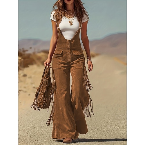 Per donna Tuta Elegante Senza Maniche Quotidiano Vacanza Vestibilità comoda Nero Marrone Verde Primavera