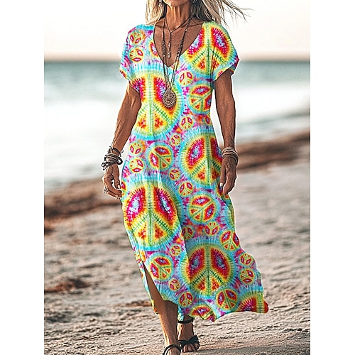 Per donna Abito Midi Abito a trapezio Casual Quotidiano Vestibilità comoda Floreale Manica Corta Scollo a V Blu Giallo Verde Estate Primavera
