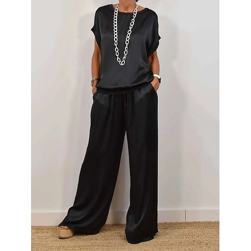 Per donna Set di Pantaloni Bolero Top Manica Corta Girocollo Semplice Coulisse Moda Streetwear Quotidiano All'aperto Ferie Nero Bianco Marrone Estate Vestibilità comoda