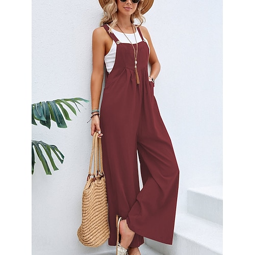 Per donna Salopette Attivo Senza Maniche Senza maniche Dritto Collo quadrato Tasca con tasca Vacanza Quotidiano Vestibilità comoda Nero Rosa Viola Estate