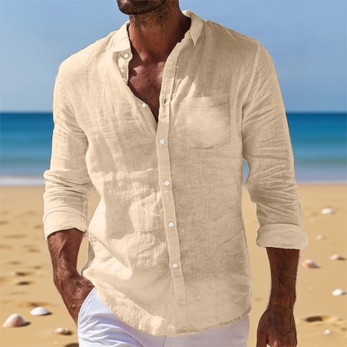 Per uomo Camicia Camicia di lino Camicia Estiva Camicia button-down Camicia da Spiaggia Camicie sbottonate Semplice Vacanza Abbigliamento quotidiano Nero Bianco Verde chiaro Rosa Manica Lunga Collo