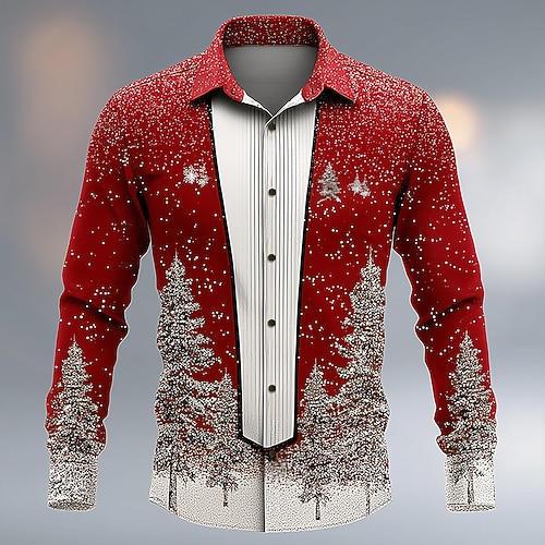 Natale Per uomo Costume di Natale Colletto finto e design del vestito Camicia da smoking stampata con cravatta Camicia Camicia con Bottoni Manica Lunga Divertente All'aperto Ferie Primavera Autunno