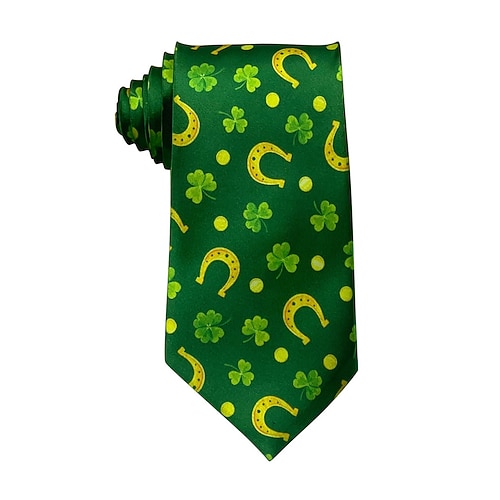 cravatta da uomo in poliestere, con fantasia multipla con trifogli e motivi di San Patrizio, perfetta per San Patrizio, Carnevale e occasioni festive