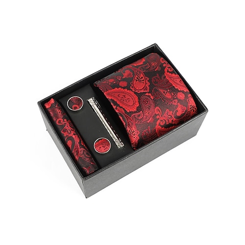 set regalo da uomo con cravatta paisley in poliestere, gemelli, fazzoletto da taschino e fermacravatta, perfetto per matrimoni e regali