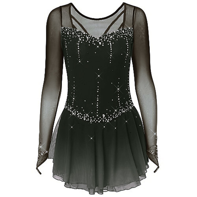 Figure Skating Dress Women's Girls' Ice Skating Dress Black High Elasticity Training Competition Skating Wear Classic Crystal / Rhinestone Long Sleeve Ice Skating Figure Skating