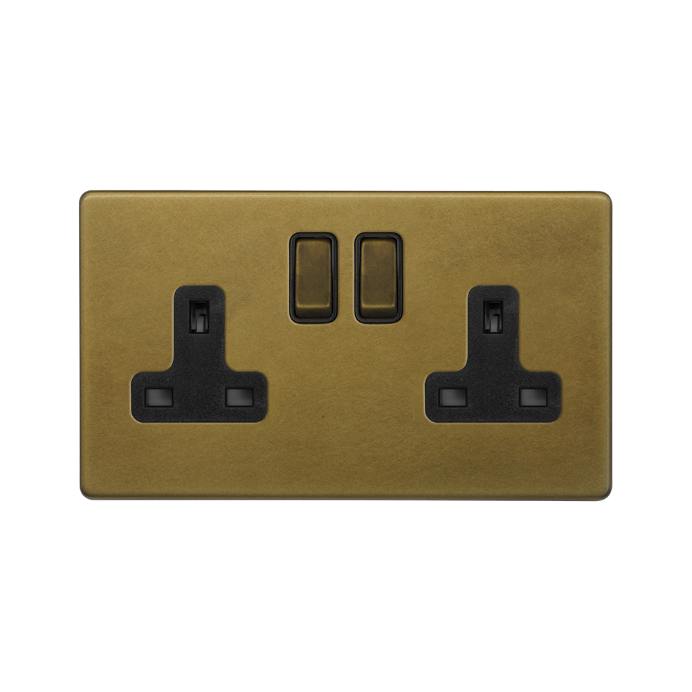 Soho Lighting Old Brass 2 Gang Double Pole Socket 13A