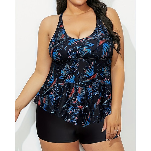 Per donna Costume da bagno 2 pezzi Tankini taglie forti Tropicale Ultra Leggero (UL) Controllo addominale Elastico Senza Maniche Costume da Bagno Surf Snorkeling Estate