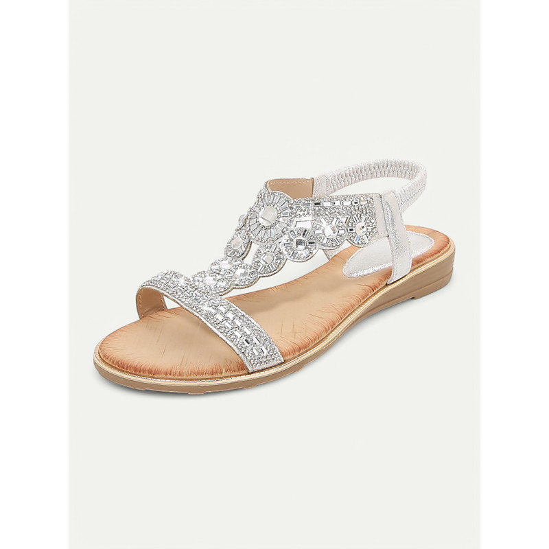 Women's Rhinestone Embellished T-Strap Sandals – Elegant Flat Slingback Sandals for Summer Beach, Wedding Party Wear