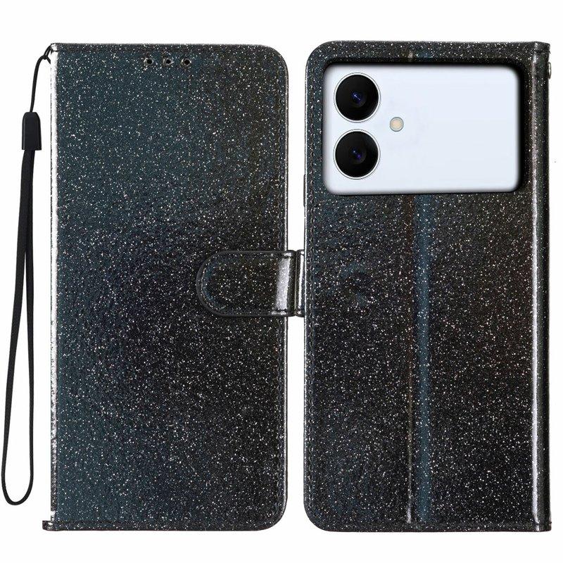 Samsung Galaxy S26 Edge Plånboksfodral Glitter Anti-Scratch Konstläder - Svart