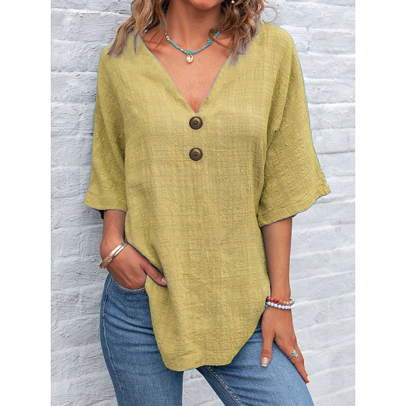 Women's Shirt Plain Basic Casual Half Sleeve Shirt Collar Regular Tops Daily Buttons Yellow Royal Blue Green Light Grey Gray Summer