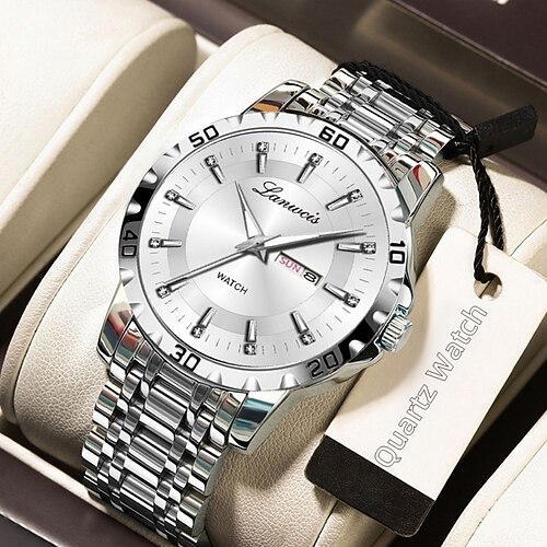 Herren Quarz Uhr Minimalistische Sportliche Freizeit Business Kalender Datum Woche Wasserdichte Dekoration Edelstahl Uhr