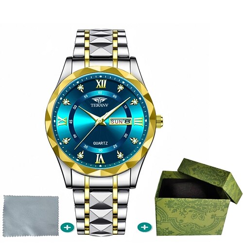 Olevs 3620 Herrenuhr Edelstahl Business Dual Kalender wasserdichte Quarzuhr Luxusmarke Diamant Herrenuhr