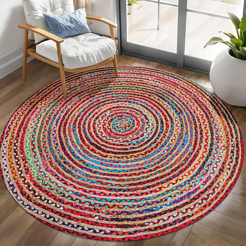 Bohemian Round Area Rug, 2D Flat Print, Vibrant Multicolor Spiral Floor Mat, Eco-Friendly Non-Slip Home Decor Rug for Living Room, Bedroom