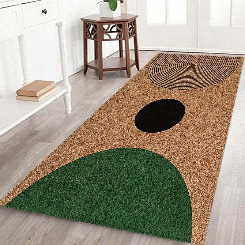 Hallway Runner Rug Minimalist Plant Geometric Art Flannel Fabric Printed Home Floor Decoration Mat Anti Slip Soft Door Mat Entrance Bathroom Floor Rug