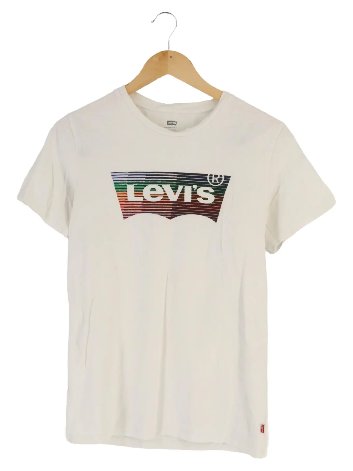 LEVI'S T-Shirt Damen Weiß Logo-Print Größe S Casual