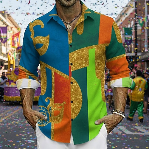 Mardi Gras Mardi Gras 2026 Clown Jester Carnival Blouse / Shirt Hawaiian Shirts Novelty Funny Adults' Men's Carnival Mardi Gras Casual Party Easy Carnival Costume Dress Up
