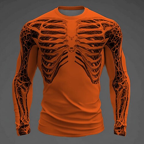 Halloween Herren 3D Skelett T Shirt Langarm T-Shirt 3D-Druck Rundhalsausschnitt Hemd Mode Übertrieben Straße Lässig Täglich Blau Purpur Orange Sommer Frühling Herbst Bekleidung S M L XL XXL XXXL