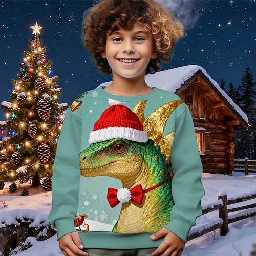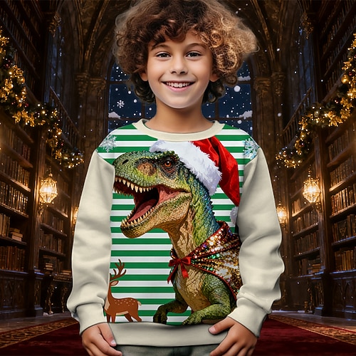 Weihnachten Jungen 3D Dinosaurier Sweatshirt Langarm Frühling Herbst Mode Basic Kinder 4-12 Jahre Rundhalsausschnitt Outdoor Lässig Täglich Normale Passform