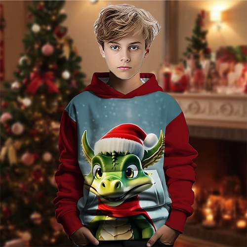 Weihnachten Jungen 3D Dinosaurier Kapuzensweatshirt Langarm Frühling Herbst Mode Streetwear Kinder 4-12 Jahre Mit Kapuze Outdoor Lässig Täglich Normale Passform