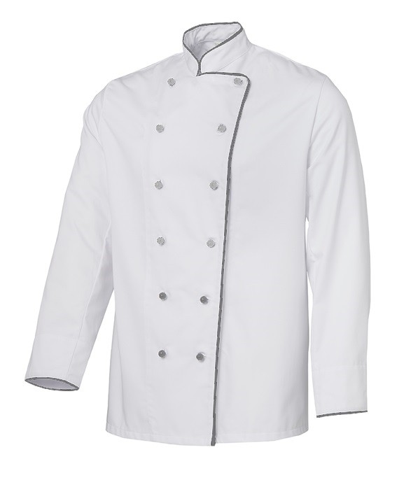 grevotex Kochjacke Bäckerjacke schwarz mit roter Paspel, Größe 94
