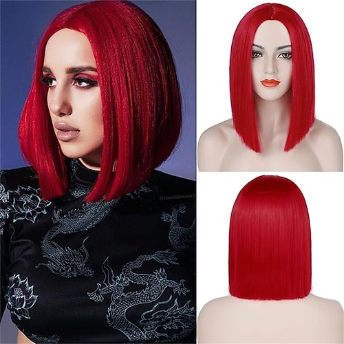Parrucca di Carnevale Rosa Rosso Blu Liscio Ciocca Corto Parrucca sintetica da festival Martedì grasso Parata Capelli per costumi da cosplay per Da donna