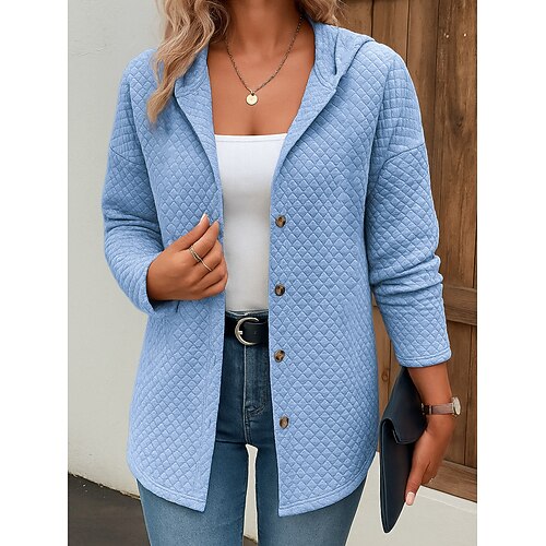 Women's Sweatshirt Casual Plaid Street Dailywear Hoodie Buttons Print Long Sleeve Black Khaki Fall Winter