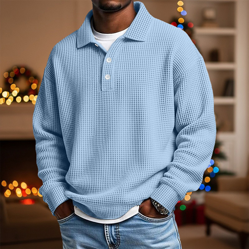 Men's Waffle Polo Shirts Polo Shirts Casual Street Lapel Long Sleeve Basic Modern Plain Buttons Spring Fall Regular Fit Dark Brown Black White Light Green Red Navy Blue Waffle Polo Shirts