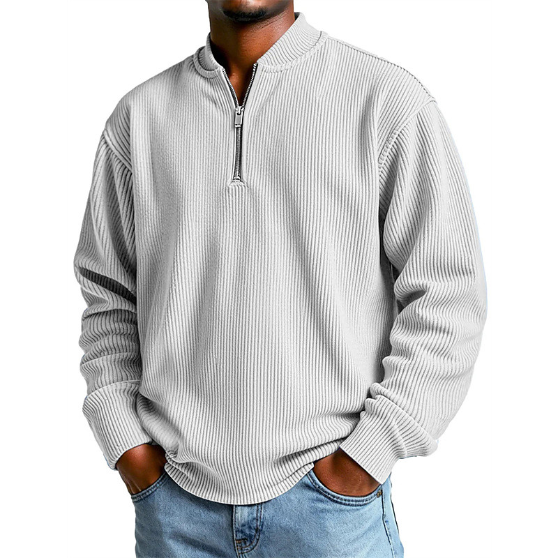Men's Polo Corduroy Shirt Vacation Street Quarter Zip Long Sleeve Fashion Basic Plain Spring Fall Tailored Fit Blue Wine White Light Purple Green khaki Polo