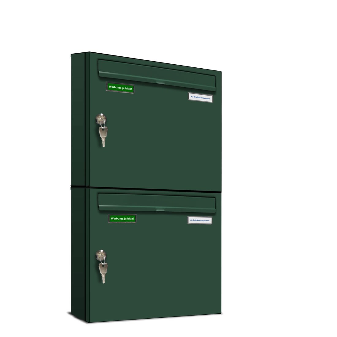 AL Briefkastensysteme 2 x Basic Wand Briefkasten in RAL Farbe 6005 Moos Grün für Post A4, wetterfest, Artikelnummer: 431P2EA1P6005