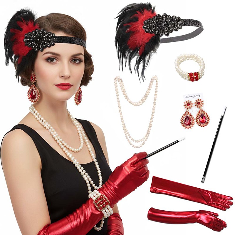 Set Roaring 20s 1920s Flapper Headband Headwear Accesories Set The Great Gatsby Flapper Girl Fancy Dress Women's Christmas Carnival Masquerade Retro Theme Party Charleston Dance Adults Bracelet